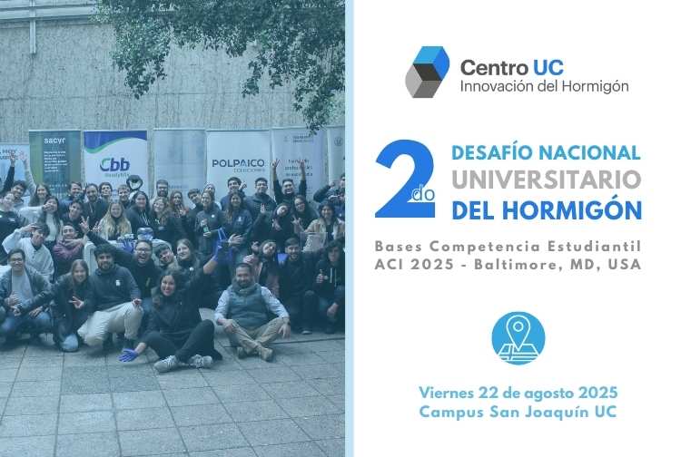 El Centro de Innovación del Hormigón UC respaldará al equipo ganador en la obtención de financiamiento para representar a Chile y a su universidad en la Competencia Estudiantil del American Concrete Institute que se realizará en Baltimore, Estados Unidos, entre el 26 y 29 de octubre de 2025.